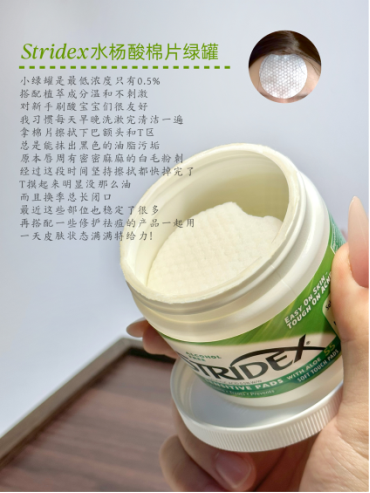 六十余年的技术积累,使得Stridex形成了科学完善的产品矩阵。绿色款(0.5%水杨酸)专为刷酸新手设计,适合日常清洁;蓝色款(1%水杨酸)针对混合性肌肤,平衡水油;红色款(2%水杨酸)则为油性痘肌提供专业解决方案。这种分级系统体现了品牌“量肤定制”的科学理念,让不同肤质、不同耐受度的消费者都能找到适合自己的产品。 2023年,品牌进一步丰富产品线,推出专业护理棉片和身体棉片。次年,水杨酸洁面乳上市,标志着品牌完成了从特殊护理到日常清洁的全体系布局。新款洁面乳采用0.2%水杨酸浓度,结合氨基酸与皂基的三重表活体系,加入七种植物精粹,既保证了清洁力,又避免了传统洁面产品的紧绷感。